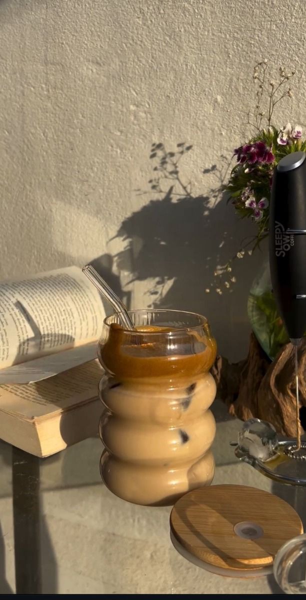 Sipper with Glass Straw Bubble Wave Shaped with Bamboo Lid